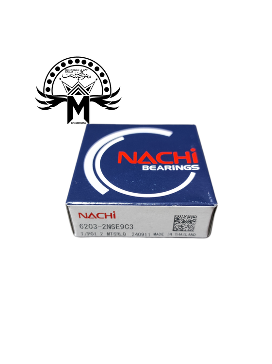 بلبرینگ 6203 2RS C3 NACHI ساخت تایلند از نوع شیار عمیق (Deep Groove Ball Bearing) بوده و یکی از پرمصرفترین بلبرینگها در صنایع و خودرو محسوب میشود. این بلبرینگ دارای دو عدد روکش لاستیکی (2RS) جهت جلوگیری از ورود گردوغبار و آلودگی و همچنین لقی داخلی C3 برای کارکرد نرمتر در شرایط بار و دمای بالا است.