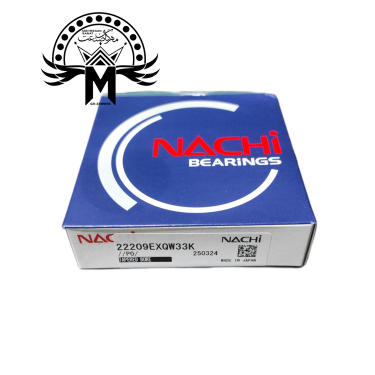 بلبرینگ NACHI 22209 K یک مدل از خانواده بلبرینگهای spherical roller bearings (ریز رولر دو ردیفه) است که برند ژاپنی NACHI تولید میکند. حرف «K» در انتهای شماره مدل نشاندهنده بوش مخروطی (taper bore) است که امکان نصب روی شافت با تبدیل مخروطی را فراهم میکند.